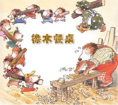 4、这真是张老长老长的橡木餐桌,刺猬爸爸全家都坐上去,再多添几个客人也没有问题呢!刺猬爸爸对自己的手艺很自豪。