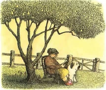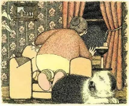 冬天,他坐在壁炉旁边看着她打盹。一年一年,他时时刻刻都陪伴着她。