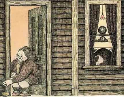 那天夜里,趁露丝太太睡着以后,江布朗跑到外面,在房子周围画了一条线。“离我们远点儿,蠢猫,这儿可不需要你,”他粗鲁地说,“你瞧,我们这样刚刚好。”