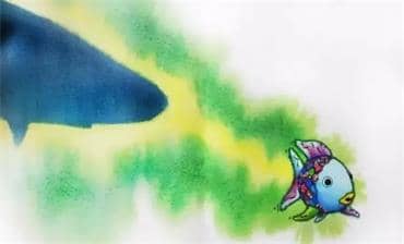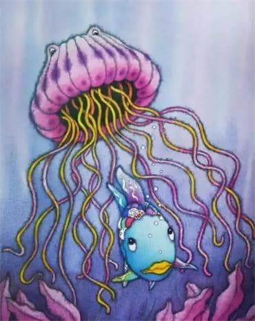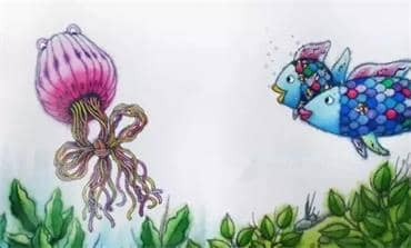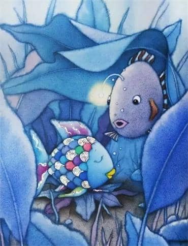 “别怕!”妈妈说,“我把灯笼鱼叫来给你照亮,一直照到你睡着。乖乖地睡吧,彩虹鱼。”
