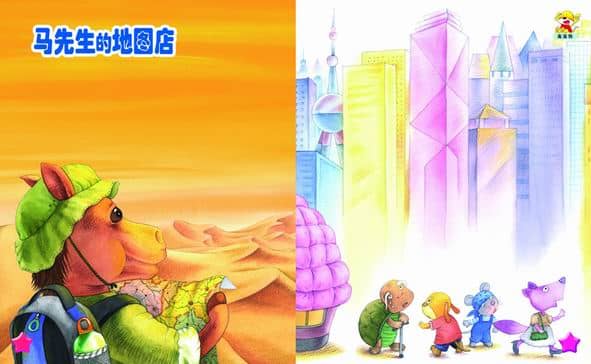 马先生喜欢旅行,年轻时,他凭着矫健有力的四条腿,到过许多地方。 每到一个地方,马先生总要展开地图看一看: “唔,这是巴黎。” “啊,我终于来到了撒哈拉大沙漠。” “没错,这是断桥,断桥在西湖,西湖在杭州……” 马先生跟地图结下了不解之缘,可以说,地图让马先生少走了许多弯路,迷路的时候也不至于被吓哭。 有一次,马先生碰到了迷路的淘淘和米粒,还把自己的地图送给了他们。 马先生送的那张地图,淘淘一直珍藏着,出门旅行时总是带在身边。 这一天,淘淘和米粒开着草莓号飞船来到一个陌生的地方。这儿高楼林立,车来车往,十分繁华。淘淘赶紧查地图,发现地图上标注着:烂泥塘。 “米粒,我们来到了烂泥塘。” “有没有搞错啊?这么漂亮的地方,怎么会叫烂泥塘?这名字太土啦!”米粒凑过来看。可一点没错,地图上就是这么写的: 烂泥塘,猪喜欢打滚的地方,很臭,道路泥泞,不通公交车。 淘淘拦住一位狐狸小姐,彬彬有礼地问: “您好!请问,这里是烂泥塘吗?” “烂泥塘?对不起,没听说过……”狐狸小姐匆匆走了。 淘淘又拦住上了年纪的乌龟先生: “您好,老爷爷!请问,这儿是叫烂泥塘吗?” 乌龟先生眯起小眼睛想了半天,突然握住淘淘的手,眼泪也流出来了:“你的话让我想起了许多往事,真的,这地方原来就叫烂泥塘!我在这儿土生土长,时光飞逝,从前的烂泥塘,早就不见了踪影……” 乌龟先生拉着淘淘还要说些什么,可天快黑了,米粒从背包里拿出草莓号飞船,扑哧扑哧地给它充气。 淘淘只好跟乌龟先生说再见了。