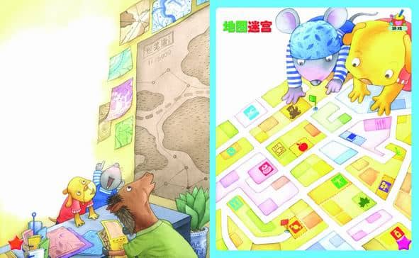 草莓号飞船把淘淘和米粒带到了哪儿呢?哦,是马先生的地图店。 噢,对了,忘了介绍马先生的地图店了。马先生年纪大了,不再到处乱跑,他把一辈子的梦想都倾注在地图上,因此开了一家地图店。 “马先生,我们又有了新发现!”米粒最先跑过来,指着墙上最大的那张地图说,“这个地方得改改,原来这里叫烂泥塘,现在叫……” 米粒一紧张把地名给忘了,扭头向淘淘求助,淘淘笑眯眯地说: “叫蓝城,一座大都市。” “哦,是吗?太棒了!”马先生激动不已,“我马上改过来,世界日新月异,咱这地图可不能跟不上趟啊。” 正这么说着,马先生的儿女们都回来了,他们带回了“一座桥”,“两道喷泉”,“三家连锁店”,“四处原始森林”, “五个人工大花园”…… 这些新的改变,又够马先生忙乎一阵子了。 淘淘和米粒呢,也继续要为马先生完成最新、最完美的地图贡献力量。