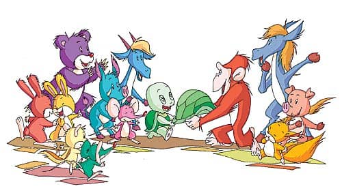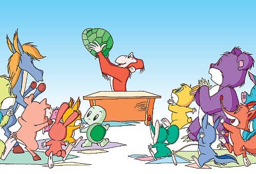 “当,当,当!”学校的钟声又响起来了。“当,当,当!”小动物们听到了钟声,都背着书包来上学了。“又开学啦,又开学啦!”小动物们高兴地喊。