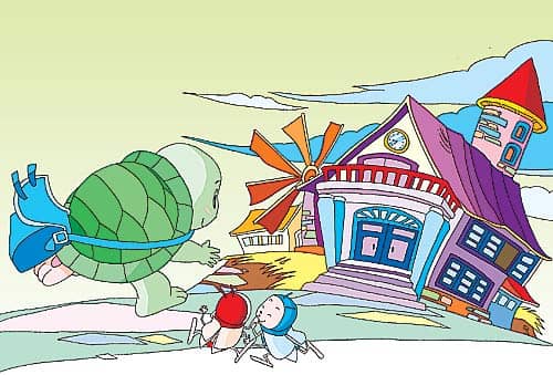 小乌龟一天天地长大了,背上的壳也长得更大了。他很高兴,因为长大了,就能去森林小学上学了。“学校会是什么样子呢?”小乌龟背着新书包,往学校走。