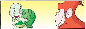猩猩校长赶紧把大背壳还给小乌龟。“真是对不起,小乌龟。今天能开学,多亏了你呀!”