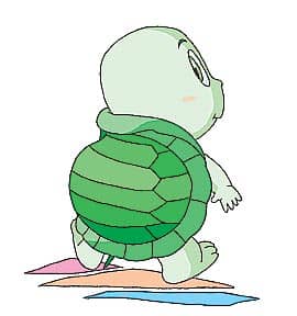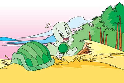 有一次,小乌龟摔了一跤,滚下山坡去了。没想到,他的大背壳哗啦一声从他的龟身上掉下来了!