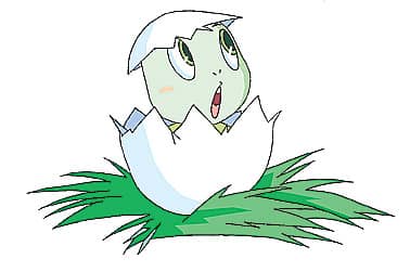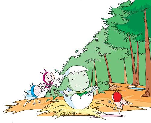 “啪!”有一个蛋自己裂开了,从里面探出一只小脑袋。“这是哪儿?我一定是已经从蛋里孵出来了。”