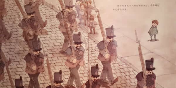 男孩们看见军人游行都很兴奋,爱因斯坦却觉得很不安。