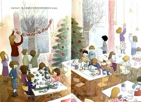 圣诞节前夕,班上所有的学生都在忙着装饰教室和圣诞树。