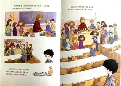 放假前一天,学生们送礼物给我。我一一拆开,大声念出每张卡片上的内容。学生们听了都很开心,我也很高兴地向他们说“谢谢”。