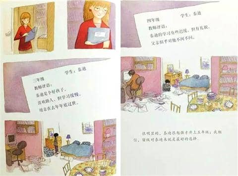 教师评语:泰迪的学习有些迟缓,但有礼貌。父亲似乎对他不闻不问。