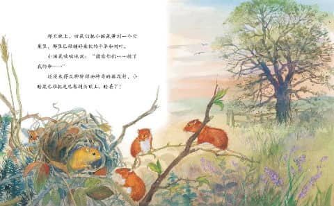 这一天,树上绽放了第一朵花,田鼠们醒过来了。