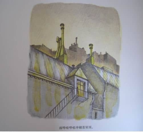 雨水顺着屋顶滚落下来,冲下屋檐,冲出排水管,