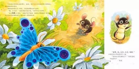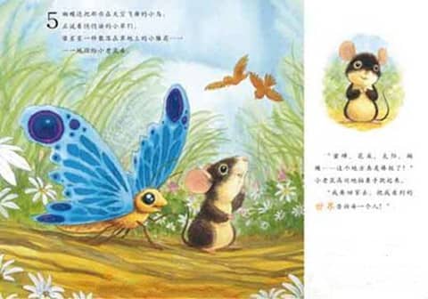 “现在我要走了。”这只蓝色的蝴蝶对小老鼠说。“再见,小老鼠!”