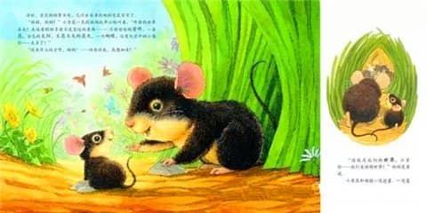 她把那些在天空飞舞的小鸟,正说着悄悄话的小草们,像星星一样散落在草地上的小雏菊,还有蜘蛛网上闪光的露珠……一一地指给小老鼠看。