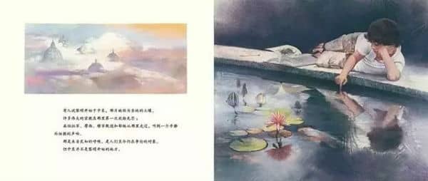 鱼儿上浮探出头,使平滑如镜的水面不时涟漪荡漾。
