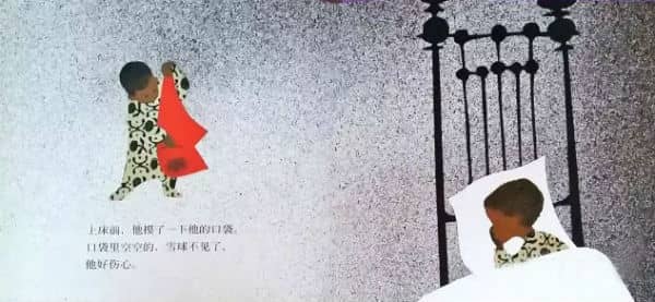 上床前,他摸了一下他的口袋。口袋是空的,雪球不见了,他好伤心。