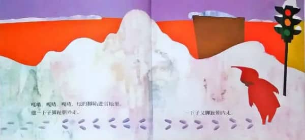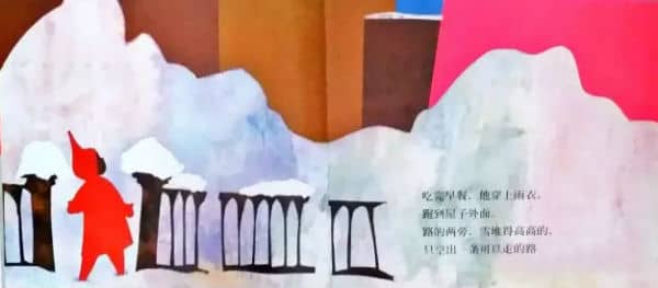 吃完早餐,他穿上雨衣,跑到屋子外。路的两旁,雪堆得高高的,只空出一条可以走的路。