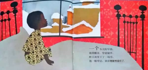 一个冬天的早晨,彼得醒来,望着窗外。昨天夜里下了一场雪。他一眼望去,到处都被雪盖住了。