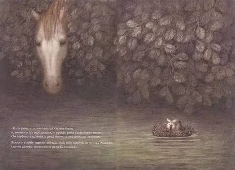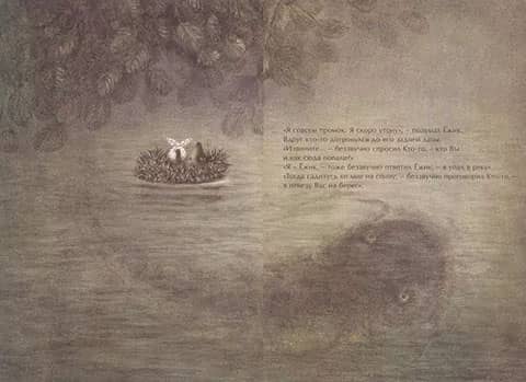 “我是小刺猬,”小刺猬也无声地回答:“我掉进河里了。“