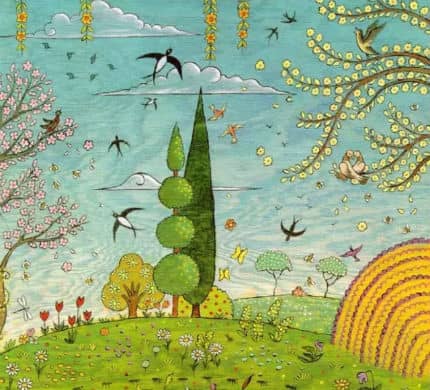 妈妈回答:“带着新的花籽飞到别家院子的草地上去了。”