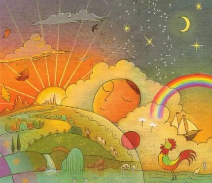 “可是,白天就这样不见了,太阳到哪里去了呢?”小男孩问。
