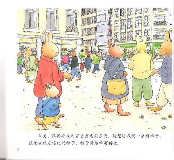 今天,妈妈带我到百货商店去买东西。她想给我买一套新裤子。就像我朋友嘎比的裤子,裤子的两边都有裤兜。