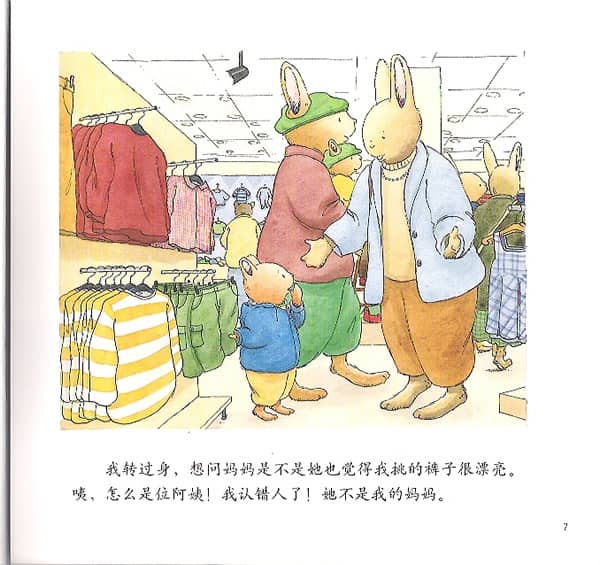 我转过身,想问妈妈是不是她也觉得我挑的裤子很漂亮。咦,怎么是位阿姨!我认错人了!也不是我妈妈。
