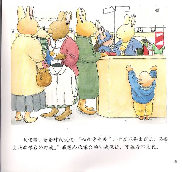 我记得,爸爸对我说过:“如果你走对了,千万不要出商店,而要去找收银台的阿姨。”我想和收银台的阿姨说话,可她看不见我。