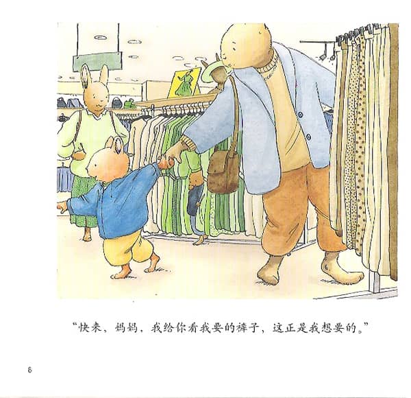 “快来,妈妈,我给你看我要的裤子,这正是我想要的。”