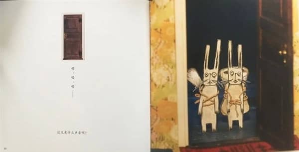 打开门,两只兔子站在门口,“我们是天上的玉兔。月亮消失了,我们没有地方住了。”