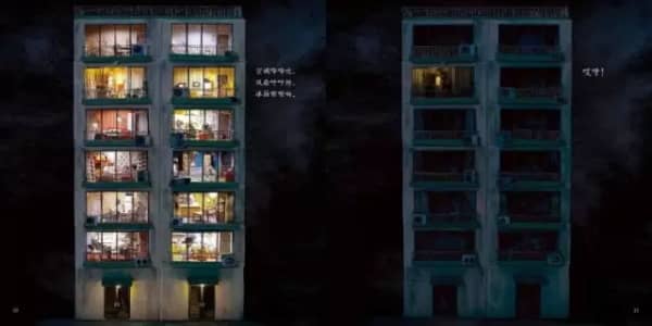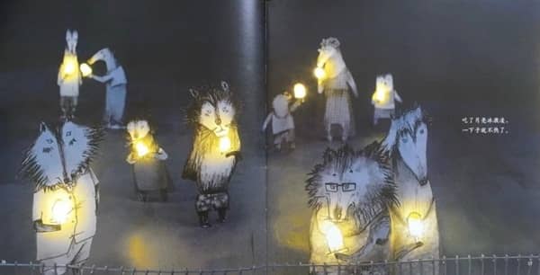 人们用的电太多,所有的人都走到外面来,好黑好黑。这时,从楼长奶奶家里透出淡淡的黄色的亮光。所有的人都向着光亮,走到了楼长奶奶家。