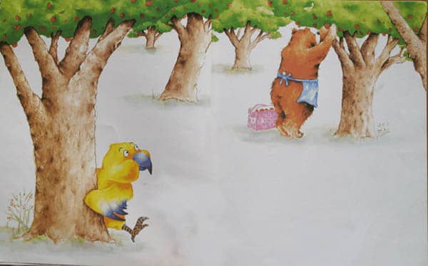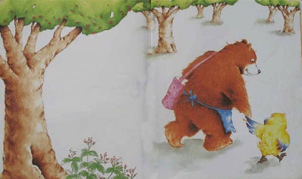 当秋秋看到正在摘苹果的熊太太的时候,他知道她一定不会是他的妈妈。熊太太长得跟他一点儿都不像。