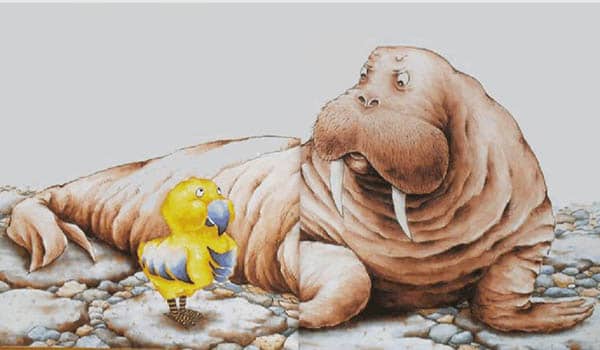 后来,秋秋遇到海象太太。“哦,海象太太!”他大声说,“你和我一样有胖嘟嘟的脸蛋,你是我妈妈吗?”