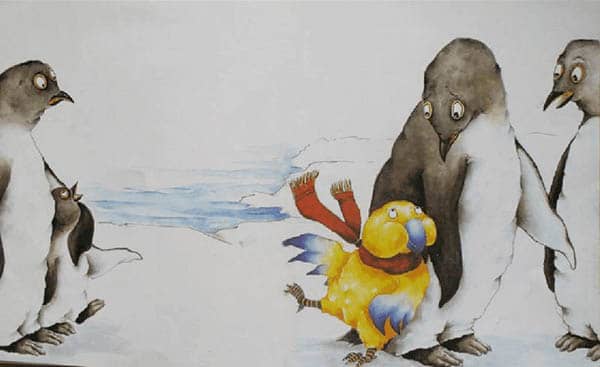 接下来,秋秋遇到企鹅太太。“哦,企鹅太太!”他大声说,“你和我一样有翅膀,你是我妈妈吗?”