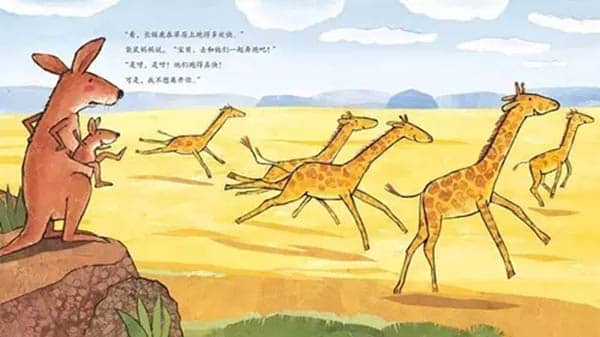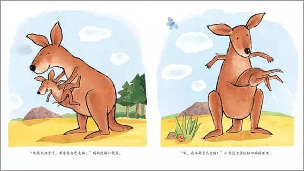 袋鼠妈妈说,“宝贝,去和他们一起奔跑吧!”