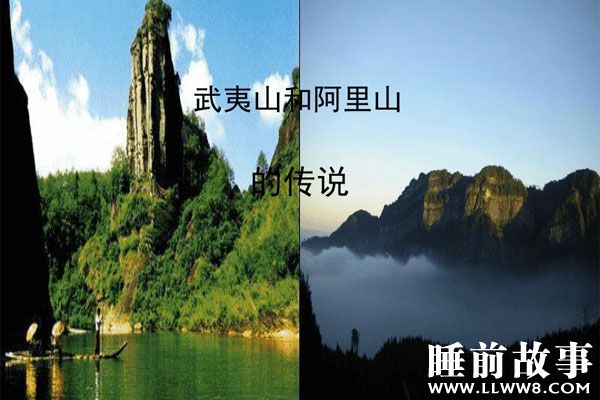在很久以前,东南沿海高大的武夷山,是和台湾的阿里山紧紧连在一起的。那时山上山下,一年四季树木长青,漫山遍野的果树上挂满了各种果子,果树下是一丛丛盛开的鲜花。山间,还有一条条瀑布和无数的小溪,山下是一片肥沃的土地。这里的人民过着安乐的幸福生活,到处响着笑语、歌声。